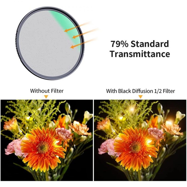 K&F Concept 72 mm-es fekete ködszűrő 1/2 Speciális effektek szűrő Ultra-tiszta többrétegű bevonattal, vízálló karcálló és tükröződésmentes Nano-X sorozat.