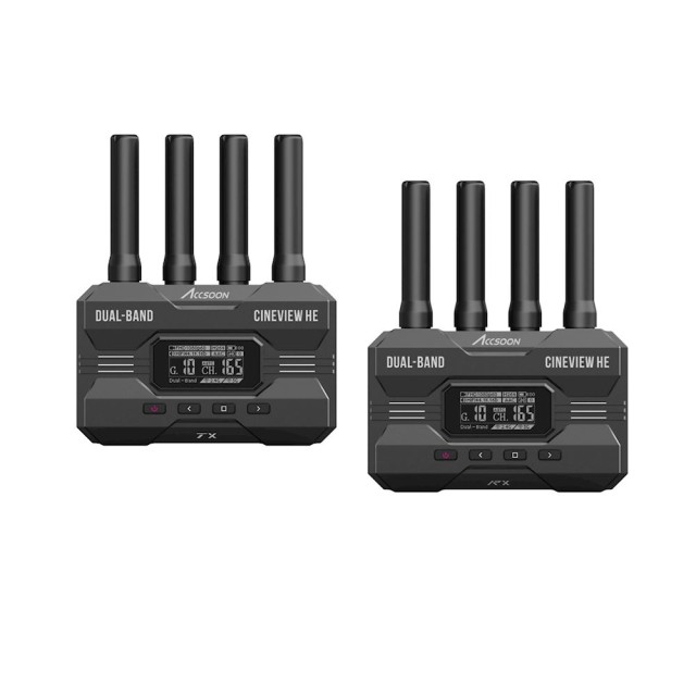 Az Accsoon CineView HE egy HDMI kettős sávú, nagy hatótávolságú vezeték nélküli kamera adó és vevő készlet, amely a vevőn új USB-C porttal rendelkezik a közvetlen élő közvetítéshez (UVC). Az Accsoon egyedülállóan szabadalmaztatott Dual-Band (2,4 GHz + 5 GHz) átviteli technológiáján keresztül HD videót és HQ hangot továbbít akár 4 eszközre (a vevője, mobiltelefon, iPad és akár MacBook a legújabb M1 chip segítségével). A vevőkészüléken található vadonatúj USB-C portja pedig sokkal több energiát biztosít az alkotóknak, az élő közvetítőknek és a podcastolóknak, hogy munkájukat vagy életüket élő közvetítéssel jeleníthessék meg.