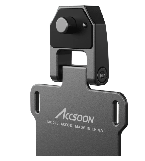 Az Accsoon ACC-ACC05 SeeMo rögzítő adapterlemez egy könnyű alumíniumlemez, amely biztonságosan rögzíti a SeeMo-t egy kompakt egységbe, és rugalmas rögzítést tesz lehetővé egy szabványos 1/4″-20 menetes csatlakozón keresztül. Támogatja a kameratartókat, kereteket, valamint iPhone- és iPad-kereteket a strapabíró monitorozási felállásokhoz.
