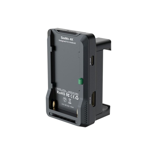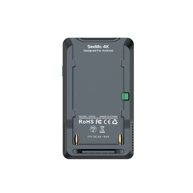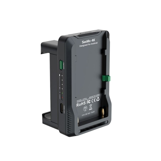 A SeeMo 4K for Android egyetlen NP-F típusú akkumulátorral képes táplálni a SeeMo 4K for Androidot, és egyidejűleg a csatlakoztatott telefon vagy táblagép áramellátására is alkalmas.
