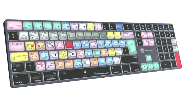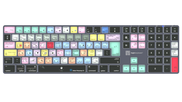 Ez a Logickeyboard az Ön első számú választása a Photoshopban történő szerkesztés során. A billentyűkön felcímkézett gyorsbillentyűparancsok és azok színkódolt definíciói révén pillanatok alatt a Photoshop vezérlésének mesterévé válik. A Logickeyboard ideális 3D modellező stúdiók, professzionális grafikai környezetek és mindenki más számára, aki szorgalmasan dolgozik a Photoshop programmal.