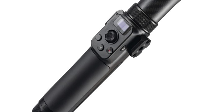 A mellékelt távirányító fogantyú az Advanced Ring Grip jobb oldalához csatlakozik, így könnyen hozzáférhet a gimbal beállításaihoz, valamint a kamera felvételi és fényképezési funkcióihoz.