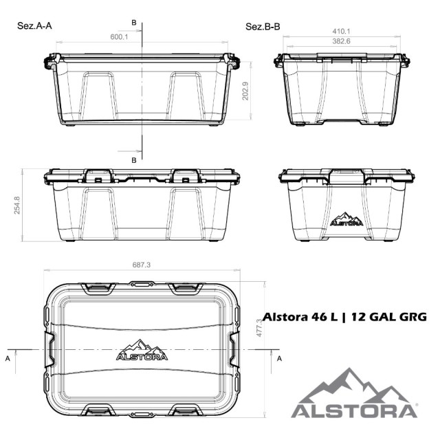 Alstora 46 L | 12 GAL GRG container 46L Grey color