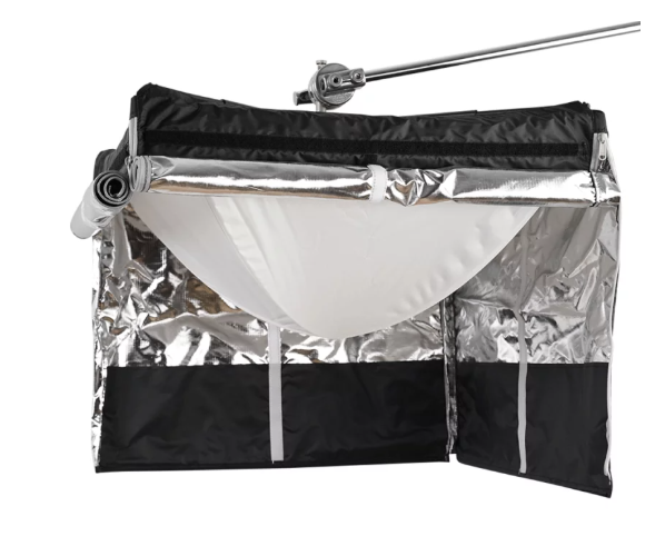 A levehető, belső részén fényvisszaverő anyaggal ellátott tépőzáras fényvédő segít kiküszöbölni a szórt fényt, így pontosabban szabályozhatja a világítási beállításokat. A lámpához tartozó 2,5 fokozatú diffúzor lágyítja a fényt, így sima, előnyös megjelenést biztosít, kemény árnyékok és fényfoltok nélkül. Akár stúdióban, akár helyszínen dolgozik, az Amaran Lantern gyors felállítása és lebontása egyszerű és hatékony megoldást kínál a világítási beállítások javításához.