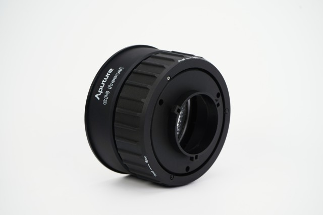 Az Aputure CF4 Compact Fresnel 4 hüvelyk átmérőjű lencsével és a Storm 80c lámpával való használatra optimalizált Mini ProLock rögzítéssel rendelkezik.