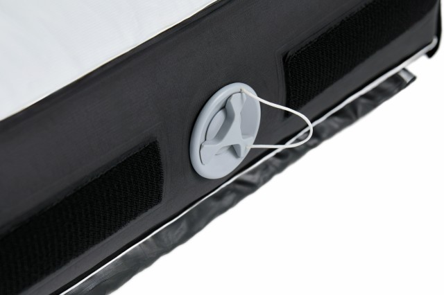 A felfújt softboxnak elegendő ereje van ahhoz, hogy a panelt, a fényrácsot és a fényernyőt tépőzárral tartsa össze, még akkor is, ha az egységet fejjel lefelé helyezik vagy állványra szerelik. A diffúzor gyorsan és egyszerűen felfújható, például légpumpával.