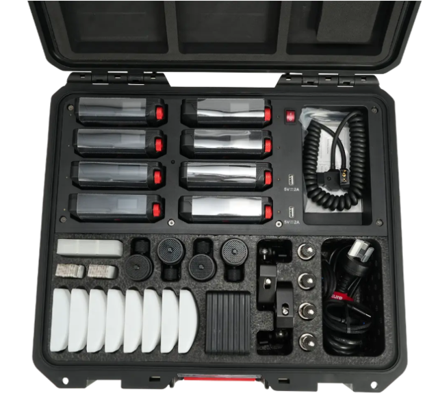 Az Aputure MC Pro 8-Light Kit nyolc kompakt, színhelyes MC Pro LED panelt tartalmaz, töltőtokkal és kiegészítőkkel. CRI 96, SSI akár 86, vezeték nélküli vezérlés, IP65 védelem és mágneses rögzítés révén professzionális, hordozható világítást biztosít forgatásokhoz, színpadokhoz és mobil alkalmazásokhoz.