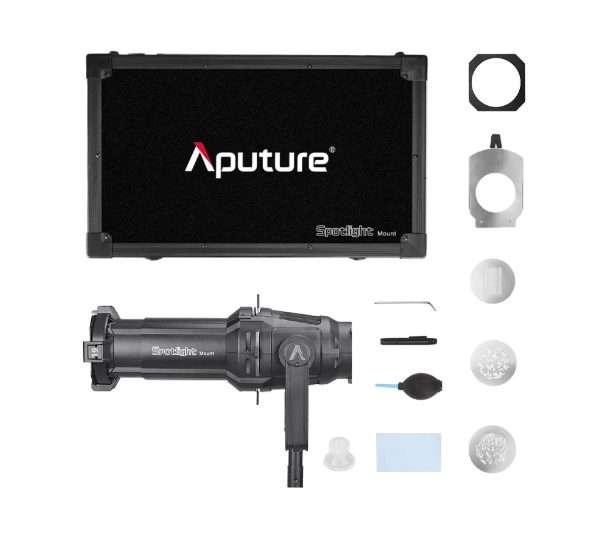 Az Aputure Spotlight Mount Set 19° pontos, kontrasztos fényformázást és pontos színvisszaadást biztosít. Tartós öntött alumíniumból készült, kompatibilis a Bowens-mount LED-es lámpákkal, ideális részletes jelenetek és termékek megvilágításához.