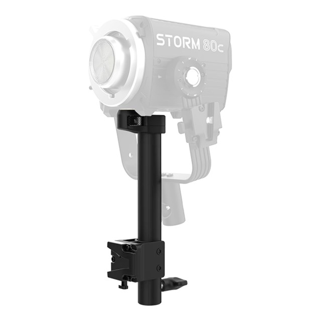 A STORM 80c fénytartó a lámpa aljára van rögzítve. A fogantyú alján egy V-Mount elemtartó lemez található az egyensúlyozás érdekében. A tartozék egy D-csap 5,5 mm-es egyenáramú csőre csatlakoztatott tápkábel, amely az akkumulátorlemezt a STORM 80c-hez csatlakoztatja. A STORM 80c tápellátásához USB-C akkumulátorok is használhatók. A tartó alján található egy bébi pin vevő, amely lehetővé teszi a lámpa rögzítését az állványhoz akkor is, ha a levehető yoke le van kapcsolva.