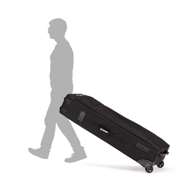Az erős külső párnázott fogantyúk a felső és oldalsó panelen, valamint a levehető ütéscsillapító görgők lehetővé teszik, hogy a bőröndöt egy és két személy is kezelhesse, így a helyszínen könnyen manőverezhető.