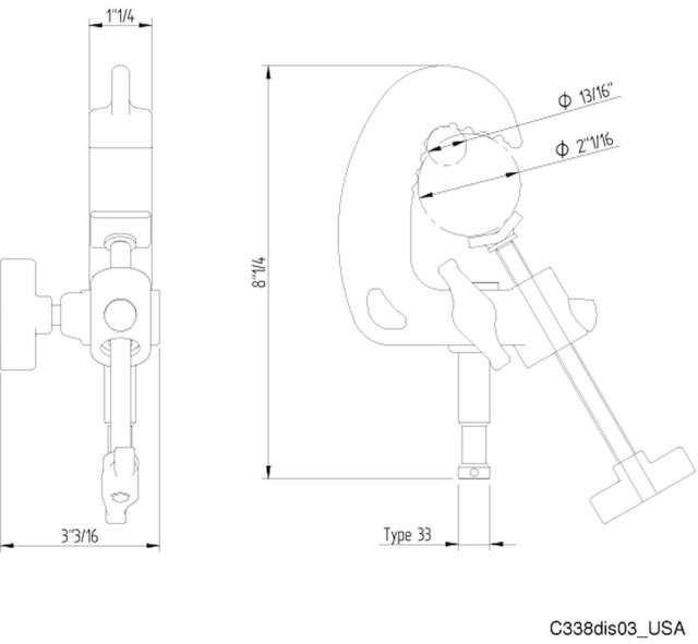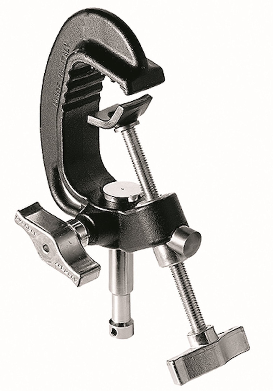 A T alakú fogantyú gyors és szerszám nélküli felszerelést tesz lehetővé, míg a beépített 16 mm-es (5/8") csap biztosítja a kompatibilitást a szabványos világítási berendezésekkel. A nagyobb biztonság érdekében a bilincs egy speciális furattal rendelkezik, amelyhez rugalmas acél biztonsági kábelek rögzíthetők, így megfelel a professzionális szerelési és biztonsági követelményeknek. 20–52 mm-es szorító tartományával és 50 kg-os teherbírásával a C338 megbízható és hatékony választás igényes produkciós környezetekben.