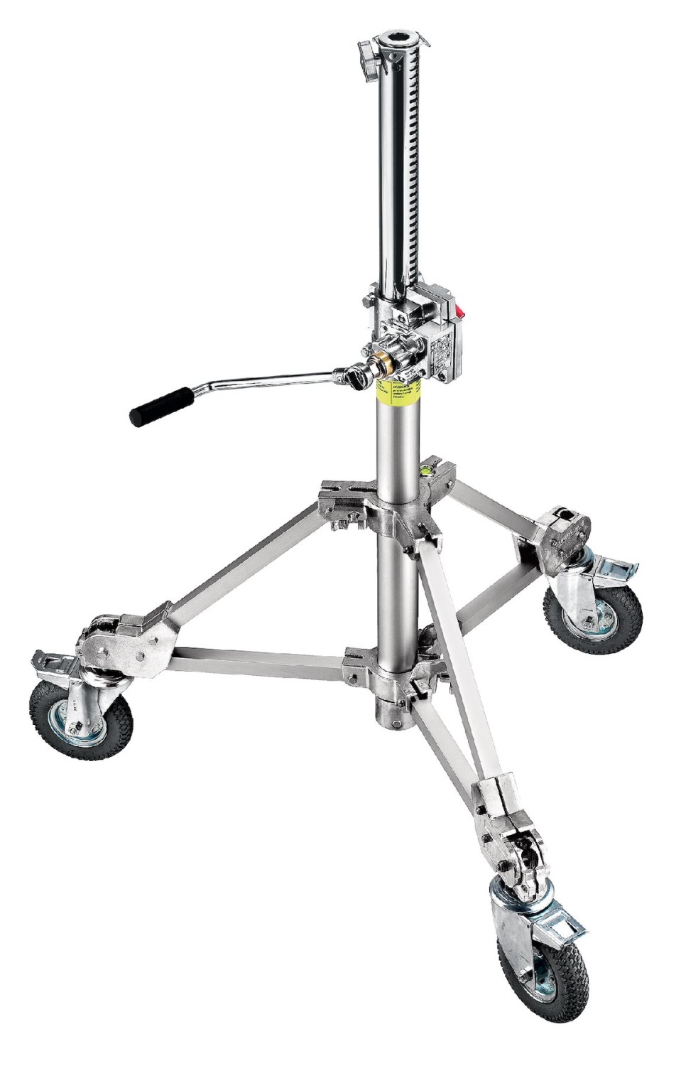Habbal töltött, fékezhető, többirányú kerekekkel felszerelt B7018 könnyedén mozgatható különböző felületeken, miközben pontos pozicionálást biztosít. Az állvány robusztus fogaskerék-rendszerrel rendelkezik, amelynek levehető racsnis fogantyúja biztosítja a nehéz terhek sima emelését és leengedését. Ha nem használja, a racsnis fogantyút kényelmesen elhelyezheti az alsó oszlophoz rögzített felső öntvény oldalán. 126 cm-es összecsukható hossza és 120 cm-es széles alapátmérője biztosítja a hordozhatóságot és a stabilitást.