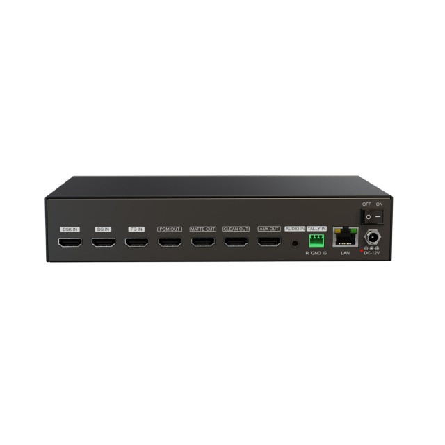 Külső HDMI valós idejű kromakey doboz 3x 4K HDMI bemenettel és 4x 4K HDMI kimenettel. Egygombos intelligens keying: Gyors és pontos, ideális komplex háttérhez. Zöld/kék háttér támogatás: Többféle helyzetben is használható, professzionális eredményekkel. Külső audio és tally bemenet: Ideális többkamerás koordinációhoz.