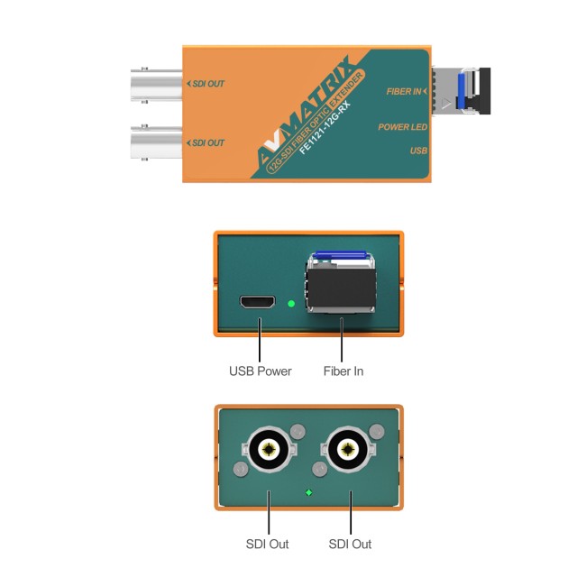 Optikai SDI jelátalakító. Ár páronként, 12G SFP/LC adapterrel együtt. Az átviteli távolság akár 10 km, támogatja az SDI SD, HD, 3G, 6G és 12G formátumokat. Az átalakító tápellátása USB-n keresztül történik, és az átalakító 2x 12G SDI kimenettel rendelkezik a vevőn.
