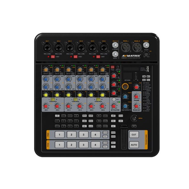 A Shark H4M egy kompakt, mégis nagy teljesítményű audio-video kapcsoló, amelyet professzionális streaming, műsorszórás és élő produkcióhoz terveztek. Hat mikrofonbemenettel, két sztereó bemenettel és négycsatornás beágyazott hanggal rendelkezik, és kiváló minőségű hangot biztosít szimmetrikus XLR kimenetekkel és TRS monitorozással. A fejlett hangfeldolgozás erősítésszabályozást, 99 üzemmódú DSP effektprocesszort, mono/stereo kapcsolót és beépített Bluetooth-lejátszót tartalmaz.
