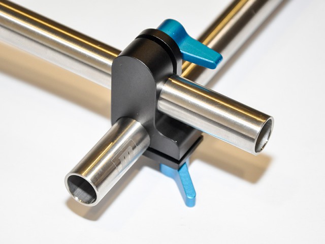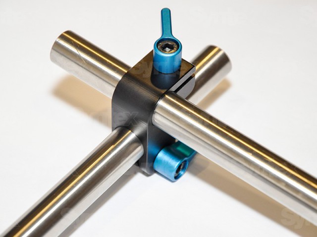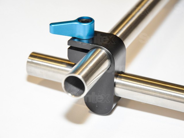 Szögletes rúdadapter. Lehetővé teszi a rudak derékszögben történő egymáshoz rögzítését. 15 mm átmérőjű rudakon használható.
