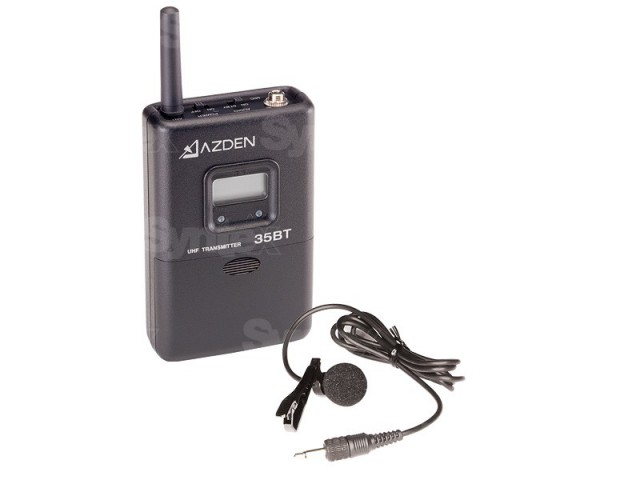 Az Azden 35BT-CE egy vezeték nélküli, testre szerelhető adó, amely egy EX-503L típusú, klipszes, minden irányba irányított lavalier mikrofont tartalmaz.