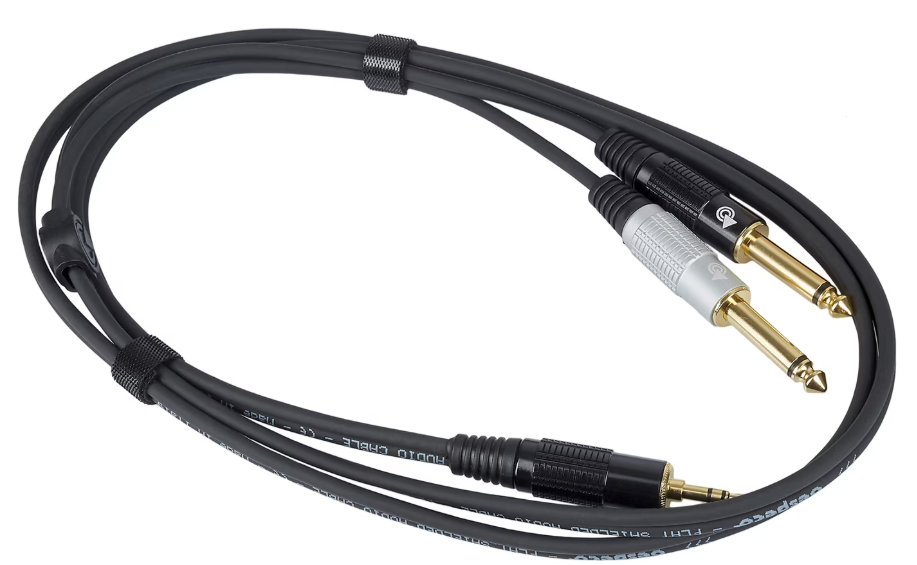 A Bespeco EAYMSJ150 egy 3,5 mm-es TRS-ről kettős 6,3 mm-es TS-re átmenő összekötő kábel (1,5 m, fekete) 98% OFC vezetővel, félvezető PVC belső burkolattal a csendes működés érdekében, 92% spirális árnyékolással, aranyozott alumínium testű csatlakozókkal és tartós PVC/vulkanizált szilikon burkolattal rendelkezik, amely tiszta sztereó-mono osztást…