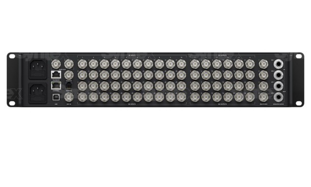A 2 RU magasságú felsővezeték teste az elülső maszkon átfogó kezelőpanellel (pl. a telepítés közbeni vezérléshez) és egy nagy LCD-kijelzővel van ellátva a műsorok előnézeti megtekintéséhez vagy a készülék menüinek böngészéséhez. Kis mérete ellenére a hátsó panel 40 12G-SDI bemenettel / 24 12G-SDI aux kimenettel, valamint szimmetrikus audio bemenetekkel, hálózati interfésszel és RS-422 porttal, valamint MADI formátumú digitális audio bemenetekkel rendelkezik a Fairlight belső keverő interfészéhez