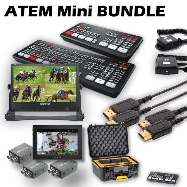 A HDMI bemenetek mindegyike teljesen szinkronizált, és automatikusan átalakítja az 1080p, 1080i és 720p jeleket az aktuális felső felbontásra. Program/Preview üzemmódban a HDMI-kimenet a kamerák kimenetének vagy a készülő műsornak az előnézetére szolgál, az ATEM Mini Pro modell emellett többnézetes kimenetet is kínál.