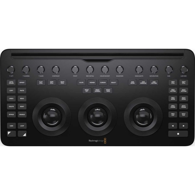 Az új DaVinci Resolve Micro Color Panel 3 nagy felbontású, súlyozott trackballal és 12 precíziós megmunkálású vezérlőgombbal rendelkezik, amelyek közvetlen hozzáférést biztosítanak a legerősebb elsődleges korrekciós funkciókhoz, megkönnyítve a kísérletezést és az új kombinációk kipróbálását. Az elsődleges gombok az Y Lift, Y Gamma, Y Gain, Kontraszt, Pivot, Mid-tone Detail, Color Boost, Shadow, Highlight, Saturation, Hue Rotation és Luminance Mix vezérlésére használhatók.