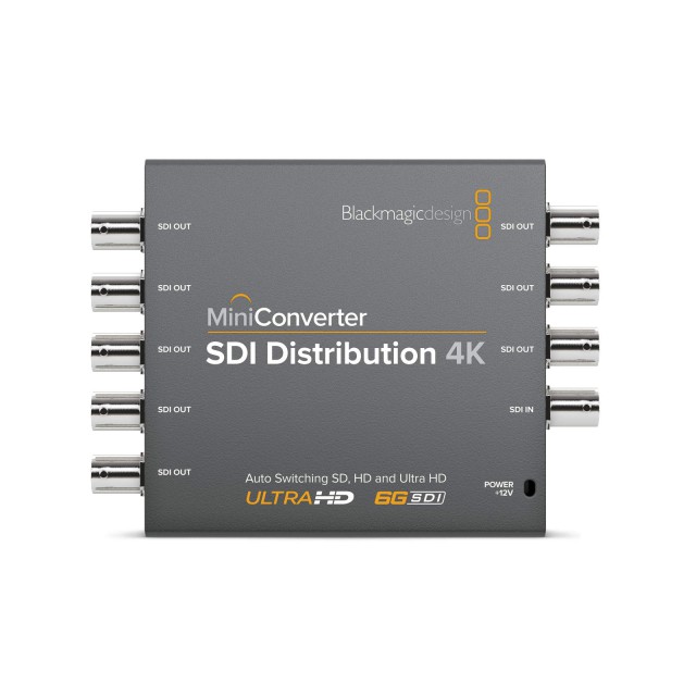 A Mini Converter SDI Distribution 4K az SDI bemeneten lévő jelet 8 különböző SDI kimenetre osztja szét. Automatikusan vált az SD, HD és Ultra HD videóformátumok között