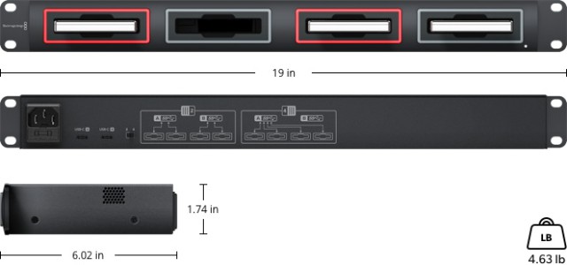 A meghajtó aktivitását az előlapon található LED-ek jelzik, a hátlapon pedig két USB-C port és egy kapcsoló található, amely lehetővé teszi, hogy mind a négy meghajtót egyetlen USB-B interfésszel használja, vagy két pár meghajtót osszon meg egy pár USB-C busz segítségével. A Blackmagic MultiDock akár négy 2,5"-os SSD-t is képes befogadni macOS X és Windows platformokon. A felhasználók így könnyedén dolgozhatnak például URSA Mini Pro SSD felvevőktől származó felvételekkel anélkül, hogy a rögzített adatokat másolniuk kellene. Ideális kiegészítője a HyperDeck Extreme 8K rögzítőknek is, mivel lehetővé teszi, hogy könnyen megosszák a felvételi médiát más stúdiótermékekkel