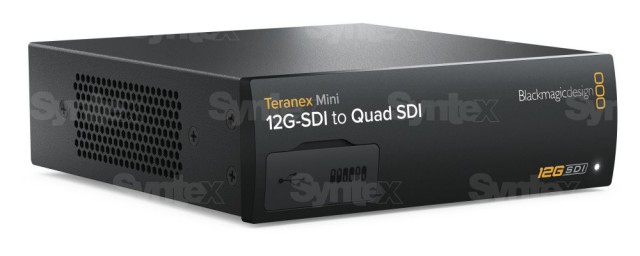 A Teranex Mini 12G-SDI to Quad SDI termék 12G-SDI jeleket alakít át Quad-Link SDI-re a legújabb 12G-SDI Ultra HD technológia zökkenőmentes együttélése érdekében olyan munkahelyeken, ahol Quad-Link SDI-vel rendelkező Ultra HD berendezéseket is használnak. Ez a modell azt is lehetővé teszi, hogy az Ultra HD SDI jelet négy HD-SDI kimenetre alakítsák át, pl. a hagyományos HD kijelzőkhöz, amelyek kijelzőfalakat alkotnak a felülvilágítókban.