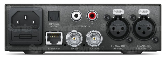 A Teranex Mini termékek szabványos XLR-csatlakozókkal is rendelkeznek a szimmetrikus hangvonalak, a digitális AES/EBU-interfészek vagy a timecode-források csatlakoztatásához. A felhasználók szabványos stúdió kábelezést használhatnak megbízható csatlakozótípussal, amely zárral rendelkezik a véletlen kábelhúzás megakadályozására. A Teranex Mini audio áramköreit teljesen újratervezték a rendkívül alacsony zajszint (több mint -115 dBFS) és a maximális hangminőség érdekében