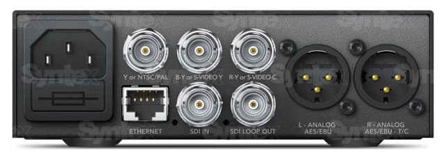 A Teranex Mini termékek szabványos XLR-csatlakozókkal is rendelkeznek a szimmetrikus hangvonalak, a digitális AES/EBU-interfészek vagy a timecode-források csatlakoztatásához. A felhasználók szabványos stúdió kábelezést használhatnak megbízható csatlakozótípussal, amely zárral rendelkezik a véletlen kábelhúzás megakadályozására. A Teranex Mini audio áramköreit teljesen újratervezték a rendkívül alacsony zajszint (több mint -115 dBFS) és a maximális hangminőség érdekében