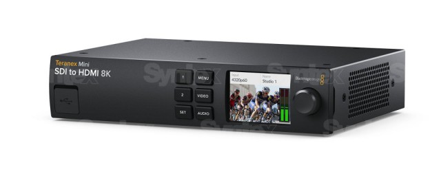 Az előlapi LCD kijelzőn nemcsak a videó előnézet, hanem a hangmérők is megjelennek VU vagy PPM ballisztikával vagy bemeneti formátummal; a hátlapon egy Quad-Link 12G-SDI interfész található, amely támogatja a HD, Ultra HD és 8K felbontást. A Quad-HDMI bemenetekkel rendelkező 8K TV-k és projektorok számára 4 HDMI kimenet is rendelkezésre áll, és természetesen a 8K videó Ultra HD vagy HD felbontásra történő lefelé konvertálására szolgáló funkció, valamint a 2SI (2-Sample Interleave) és a Square Division formátumok közötti automatikus konverzió. A Teranex Mini SDI-HDMI 8K modell támogatja a legújabb HDR szabványokat, többek között. PQ és Hybrid Log Gamma (HLG) formátumok az ST2108-1, ST2084 és ST425 szabványok szerint, valamint a Rec.2020 és Rec.709 színterek, illetve a DCI-P3 formátum támogatása.