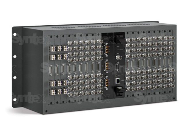 Az állványkeret lehetővé teszi akár 18 BNC SDI vagy optikai szálas SDI interfész, valamint egyetlen 72 x 72 keresztpont és tápkártya hozzáadását. Kivehető ventilátortálcát és ventilátorokat tartalmaz.