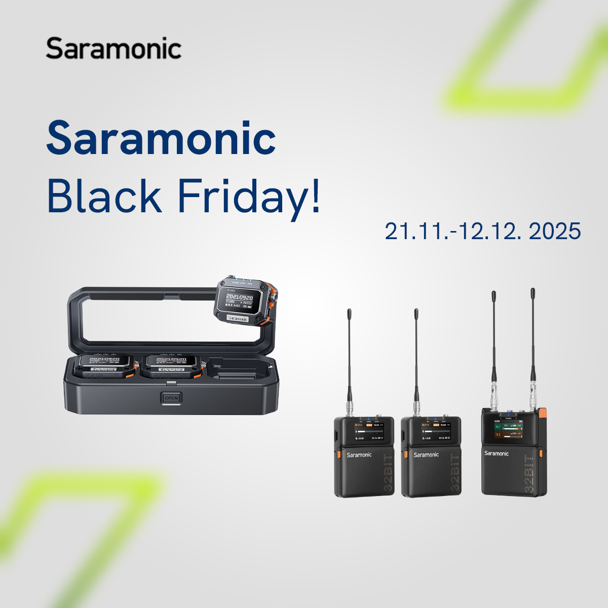Bemutatjuk a Saramonic márkaBlack Friday akció ját! Ha megbízható audio megoldást keres felvételekhez, interjúkhoz, élő közvetítésekhez vagy csapatkommunikációhoz, akkor most itt a tökéletes alkalom.November 21-től december 12-ig kedvezményes áron vásárolhatja meg kedvenc vezeték nélküli mikrofon- és interkomrendszereinket, valamint vezeték nélküli timecode generátorunkat.