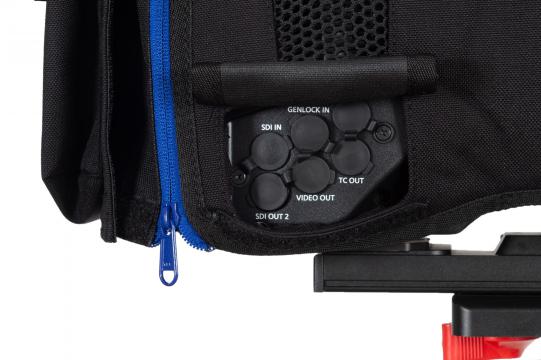 A camCover könnyen rögzíthető a fényképezőgép váza körül a kampós rögzítőkkel, miközben gyors és könnyű hozzáférést biztosít a kezelőszervekhez, a memóriakártya-foglalatokhoz, a csatlakozókhoz, a keresőhöz, az objektívhez és az akkumulátorhoz. A fényképezőgép tetején, a felső fogantyú alatt egy feltekerhető szövetdarab használható a szellőzőegység védelmére.