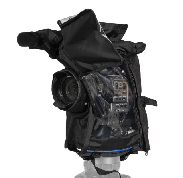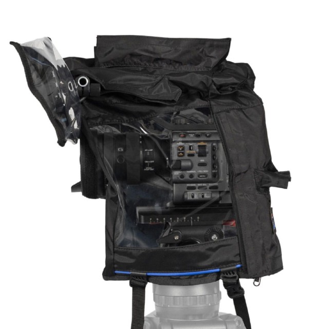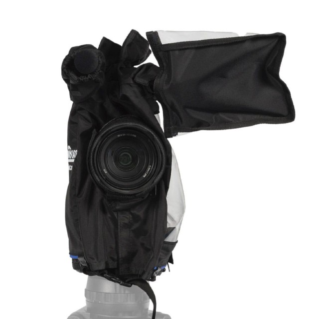 A rainCover Small egy megbízható esővédő kis méretű cine és full-frame kamerákhoz. Integrált fedéllel rendelkezik a keresőmonitor számára, és tépőzárral és cipzárral gyorsan rögzíthető a fényképezőgéphez.