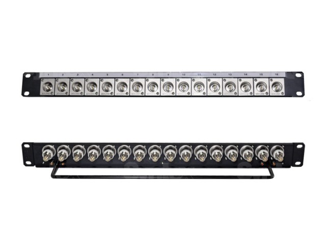 Canare Patch panel BNC 19" 1U - kétoldalas BNC (F) / BNC (F) Canare BCJ-JRUDKadapterekkel és kábeltartóval a hátoldalon. A mellékelt metrikus csavarok segítségével az előfúrt lyukakban, előre vágott menettel, a csatlakozók könnyen manipulálhatók anélkül, hogy a patchpanelt ki kellene venni a rackből!