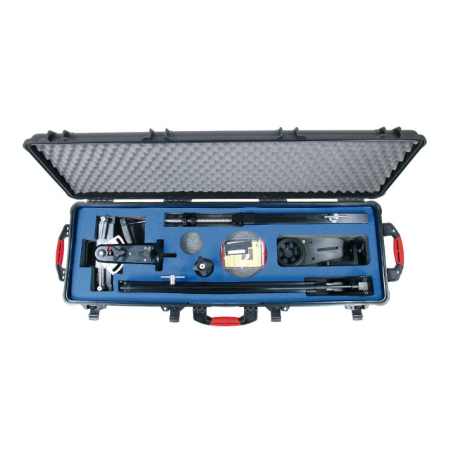 A JIBO készletkonfigurációja tartalmaz egy masszív, vízálló, könnyű, kerekekkel ellátott műgyanta tokot, egy 100 mm-es tál alapfej rögzítést többféle tájolással, balról jobbra és balra/alulról, valamint 2 vízmértéket.