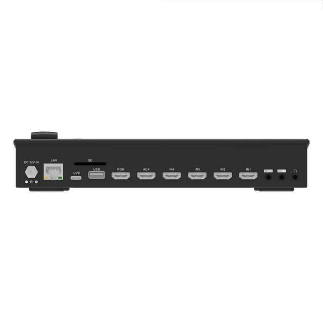 Az olyan professzionális eszközök, mint a chroma & luma keying, a PIP/POP effektek és a kettős RTMP streaming fokozzák a kreatív rugalmasságot. A kapcsoló helyi H.264 felvételt is lehetővé tesz azonnali lejátszással, és akár négy kamera PTZ-vezérlését is biztosítja a VISCA protokollon keresztül.