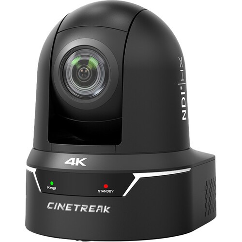 A CineTreak CT-PT25K 3G NDI egy professzionális 4K PTZ kamera, AI emberkövetéssel és NDI HX3 támogatással, Sony 1/1,8″ CMOS érzékelővel, 25× optikai zoommal, valamint egyidejű HDMI, 3G-SDI, USB, IP és NDI kimenettel. Élő produkciókhoz, oktatáshoz, konferenciákhoz és műsorszóráshoz tervezve, sima követést, kiváló képminőséget és rugalmas vezérlést biztosít PoE tápellátással.