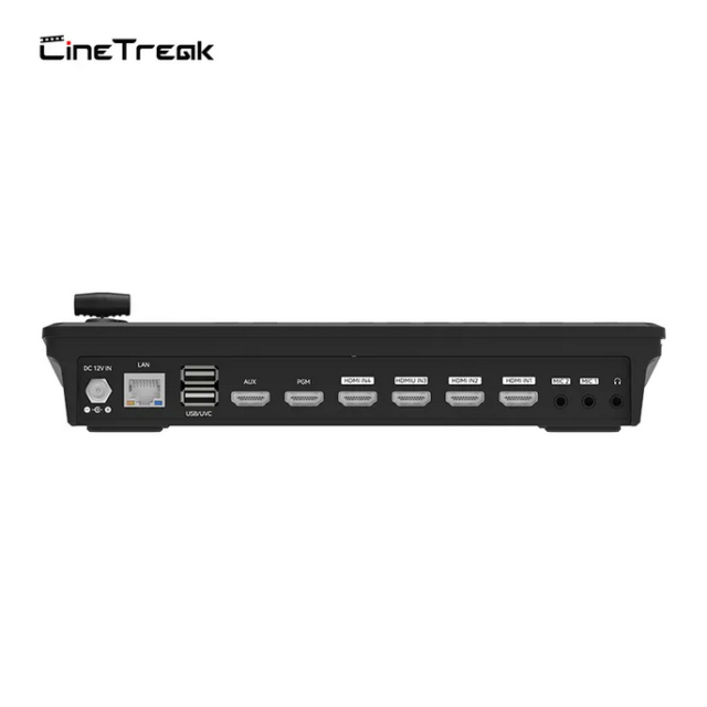 A professzionális élő produkciós munkafolyamatokhoz tervezett CineTreak Stream 1 egy sokoldalú videokeverő és streaming eszköz, amely akár 6 videóforrást is támogat, beleértve 4 HDMI bemenetet (a HDMI1-2 támogatja a 4K-t), 1 AUX-ot és 1 háttérbemenetet SD-kártyáról vagy down streamingről.