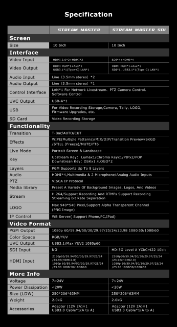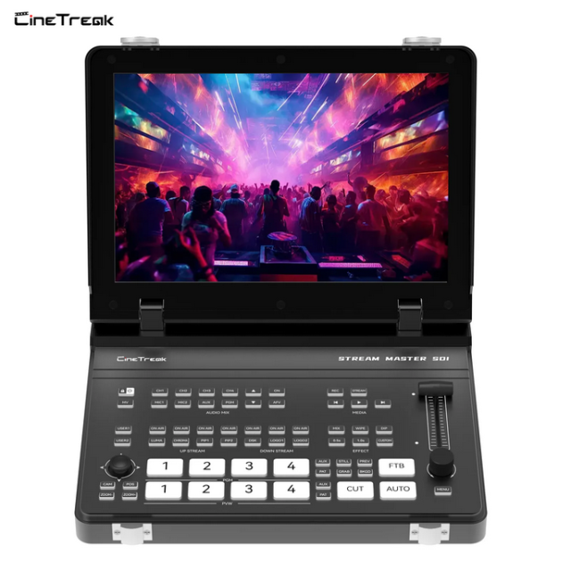A CineTreak Stream Master SDI egy professzionális minőségű 10″-es videokeverő, amely akár 4 HDMI vagy SDI bemenetet, fejlett PTZ-vezérlést, kettős RTMP streaminget és egy flip-képernyős alumínium testet támogat - ideális high-end hibrid élő produkciókhoz.