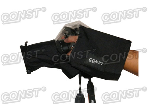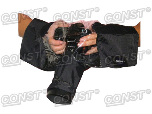 CONST RCA-01 esővédő a fényképezőgéphez. Alkalmazható tartomány: a napellenző átmérője 9 cm. Az objektív és a napellenző hossza 22cm.A fényképezőgép testének mérete hasonló a Canon 450D-hez.