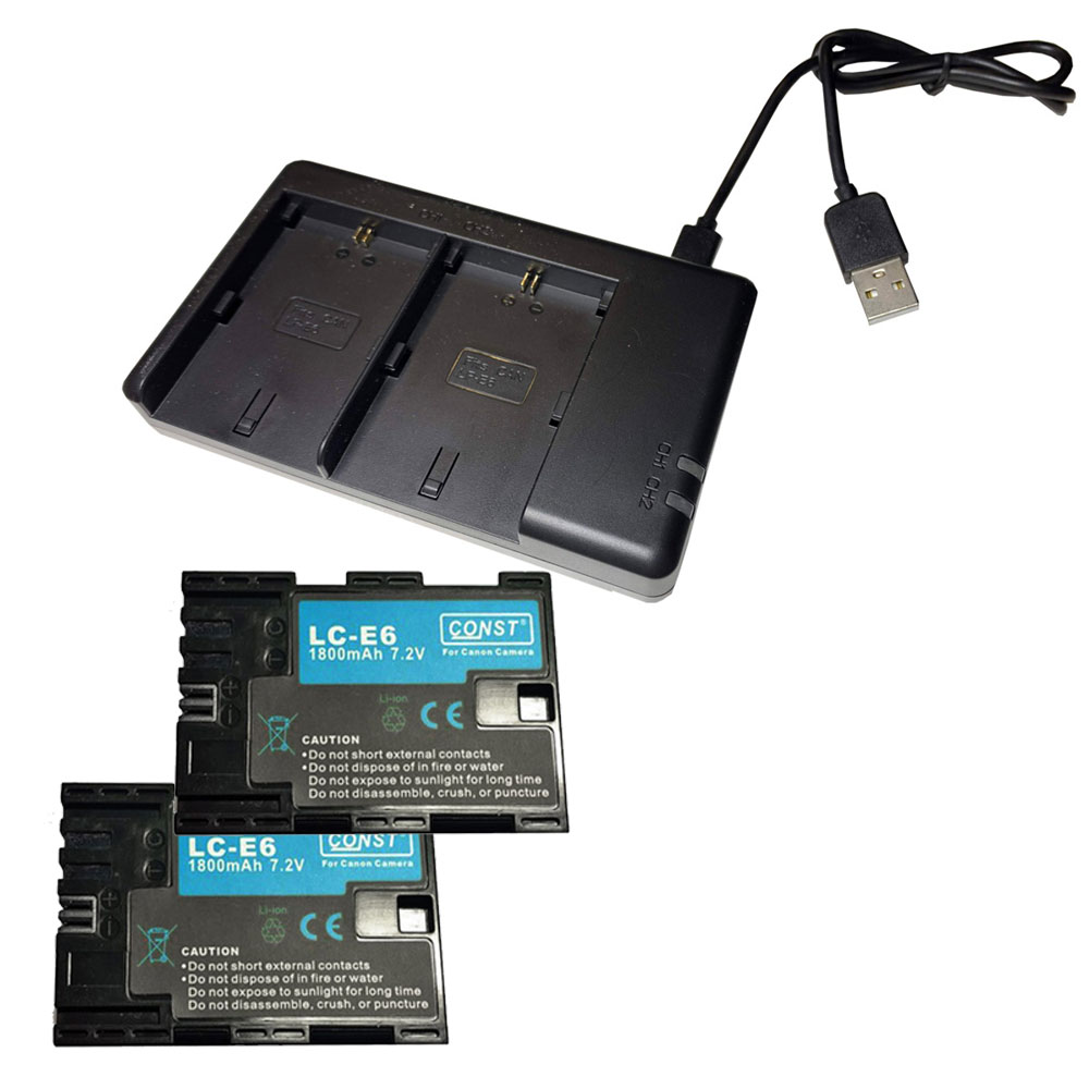 2db CONST LC-E6 (LP-E6), 7.2V 1800mAh akkumulátor és CONST C-2E6 kétcsatornás töltő