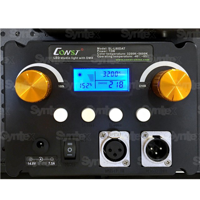 SL-L80DAT 72W, Bi color, LED-es fény, állítható intenzitással és színhőmérséklettel a távirányítóval és a mellékelt távirányítóval, V-Mount akkumulátor felszerelésének lehetőségével. Afény DMX-szel van felszerelve