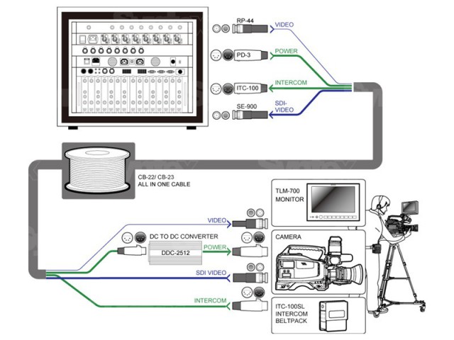 50 méteres Datavideo CB-23H je 50m "all-in-one" kábel élő produkciókhoz.