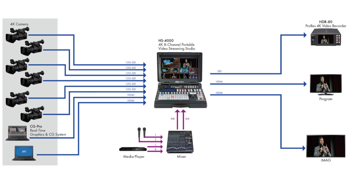 A Datavideo HDR-80 felvevő akár négy 3G SDI videojelet vagy egy 4K/UHD jelet is rögzíthet
