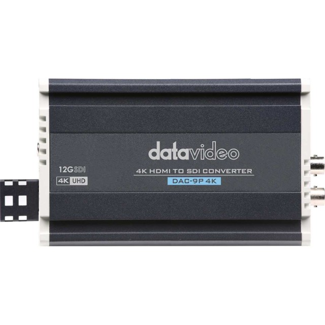 A DAC-9P 4K konverter a 4K50/60 felbontású 4K HDMI-t 12G-SDI-re alakítja át, így könnyen csatlakoztathatóak a 4K HDMI jelű eszközök és a professzionális 12G-SDI videóberendezések. HDMI bemenettel SDI kimenetre, és HDMI hurok kimenettel rendelkezik, a hang a HDMI bemenetről vagy az RCA analóg bemenetről választható. Támogatja az akár DCI 4K (4096 x 2160) és UHD 4K (3840 x 2160) felbontást. A DAC-9P 4K regenerálja a videojelet, és kevesebb jittert biztosít a kimeneti jelminőség javítása érdekében, és lehetővé teszi a nagy távolságra történő átvitelt.
