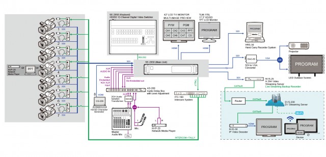 Az SE-2850 az egyetlen rackbe szerelhető, 8 bemenetű switcher, amely 12 bemenetűre bővíthető, hogy még nagyobb produkciókat támogasson. (SDI és HDMI bemenetek)