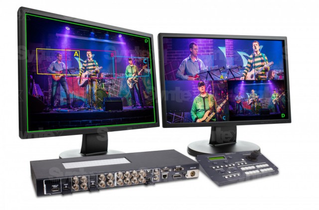 Az új KMU-100 a 4K/UHD kamerakimenetet négy különálló 16x9 HD folyamká alakítja át egy HD-SDI interfészen, amelyet az eredeti 4K adatok felhasználó által beállítható vágással hoz létre! Egy második 4K kamera is csatlakoztatható, így két 4K jelből akár nyolc HD kimenet is létrehozható. Opcionálisan a Datavideo RMC-185 kameratávirányító is használható a virtuális felvételek pásztázására, dőlésére és zoomolására. A virtuális felvételek előre is elkészíthetők előre beállított beállítások formájában