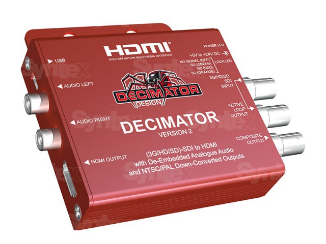 A Decimator Design DECIMATOR 2 funkcionalitását egy új USB firmware frissítéssel frissítették, és mostantól egyszerre skálázza a (3G/HD/SD)-SDI-t HDMI-re és NTSC/PAL-ra is, de-embedded anaogue hanggal (2 x RCA csatlakozón keresztül).
